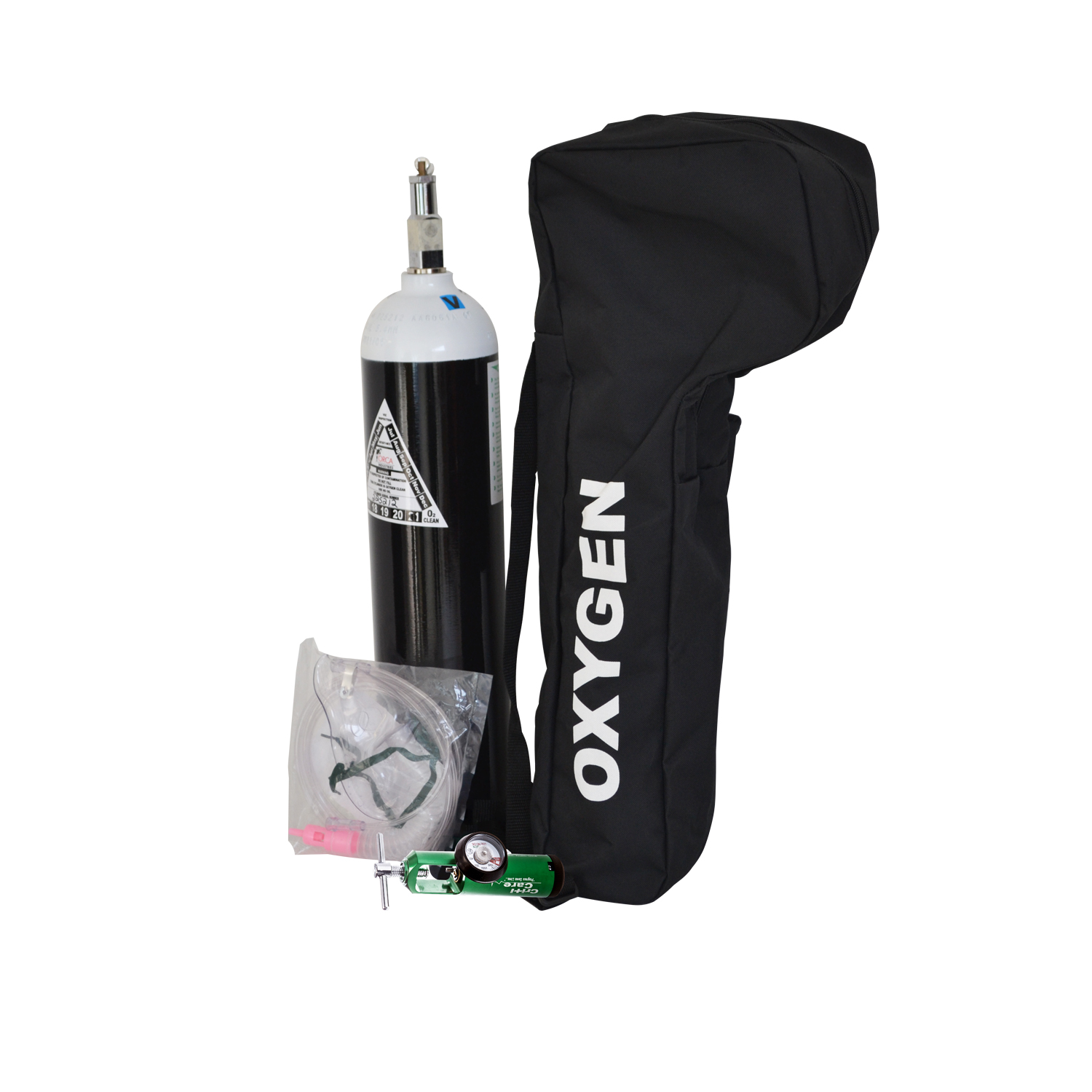 An Oxygen Cylinder 4.2 L – Complete Includes a  4.2 L Cylinder, Pin Index Regulator, Mask and Carry Bag.